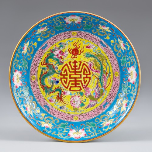 166 황지 분채 용봉문 반 청대 옹정 | 4×21.2×12.6 cm