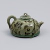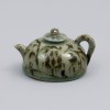 这是高丽时期半球形小型执壶,有盖,推测为砚滴之用。铁画青瓷最早在海南珍山里窑址等地开始烧造,在康津地区也多以小型器类为主,采用铁画技法装饰。