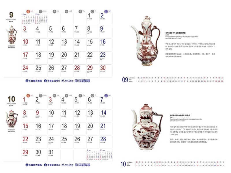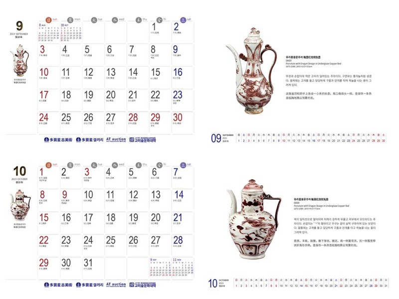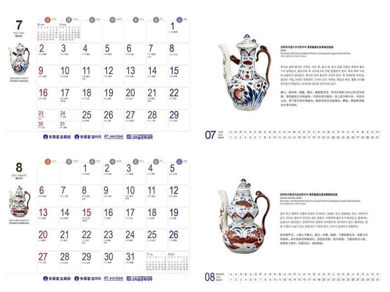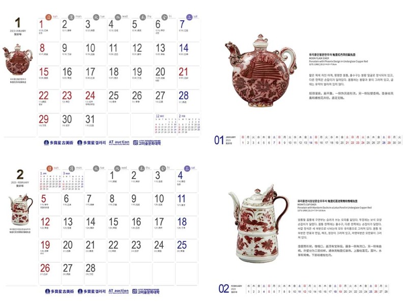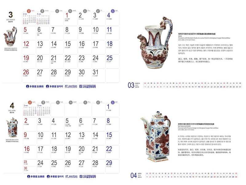 목록 원대 명기 도자기 달력 페이지 정보 조회수2,709 작성일23-01-31 16:53 본문 다보성 갤러리가 소장하고 있는 원대 명기 유물들 중 김종춘 회장님께서 직접 선정한 13점의 유물로 디자인 한 달력입니다. 다음글청화선형연적 23.01.31 목록