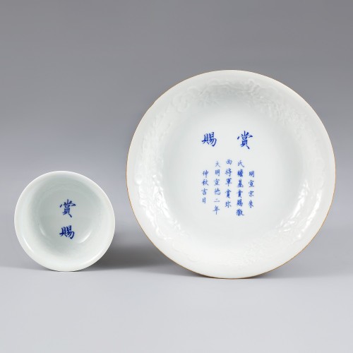 144 상사 쌍룡 간주문 잔과 잔탁 명대 선덕 | 잔 5.8×10×4 cm, 잔탁 3.7×20.3×12.2 cm