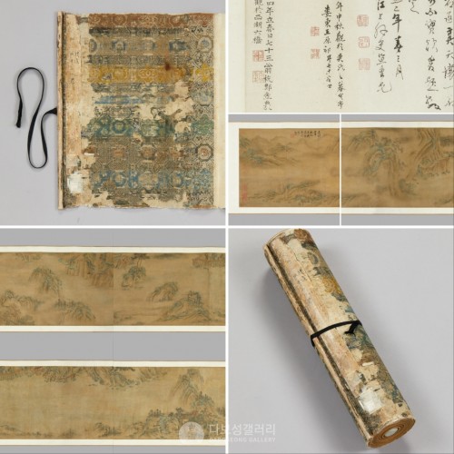 198 문징명 산수도 청록산수 명대 | 그림 903×28.2 cm / 글씨 70×28.2 cm