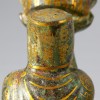 The late Spring and Autumn to Warring States period witnessed remarkable advances in bronze casting and gilding techniques, leading to the creation of ritual objects combining human figures with vessels. This lamp symbolizes an act of presenting offerings, and was likely made for royal or aristocratic use with religious and symbolic significance. The upward gaze and posture also reflect Daoist concepts emphasizing reverence for nature and unity between humans and the heavens.