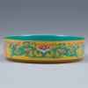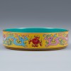 청나라 건륭제(1735~1796) 연간에 관요에서 제작된 황실용 도자기입니다. 넓은 구연부와 얕은 몸체를 가진 접시 형태입니다. 바닥면에 ‘乾隆御製(건륭어제)’ 명문이 시문되어 있습니다. 명문을 통해 건륭제의 명에 따라 황실에서 주문하여 제작되고 사용되었음을 알 수 있습니다.