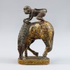 말 위에 올라탄 원숭이는 ‘마상봉후(馬上封侯)’라는 도상으로 ‘곧바로(馬上) 제후(侯)에 봉해진다(封)’는 뜻입니다. 중국어에서 마상(馬上)은 곧바로라는 단어와 발음이 같고, 원숭이 후(猴)는 제후 후(侯)와 발음이 같아 빠른 출세와 지위 상승에 대한 염원을 상징합니다. 이러한 도상은 춘추전국시대 이후 길상의 의미로 활용되었습니다.