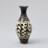 The mouth is trumpet-shaped and flares outward, with a lip modified to resemble flower petals. Below the slender neck, the body forms a round and elongated shape. The black-flower technique was used, in which the clay body was coated with white glaze and then painted with designs using black pigment. During the firing process, kiln transmutation occurred due to the kiln atmosphere, resulting in natural irregularities on the surface.