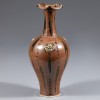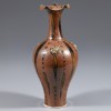 此花口瓶施酱釉。器形呈梅瓶式,口沿作花瓣形,长颈,丰肩。