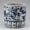 중국의 대표 도자 생산지인 경덕진에서 제작한 원통형 청화백자로 원나라 황실에서 두루마리 종이 등을 보관할 때 사용했던 지통입니다.