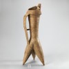 이 백도화(白陶盉)는 술을 데우는 데 사용하던 주전자 모양의 세 발 솥인 규(鬶) 형식에 작은 원형의 입구와 길쭉한 원통형 몸통을 가지고 있으며, 세 개의 길고 얇은 원뿔형의 다리가 붙어 있습니다. 목과 다리에는 가느다란 고리형 손잡이가 붙어 있고, 목의 윗부분과 몸통의 윗부분에 점선이 음각되어 있습니다. 이러한 삼족 형태의 토기는 신석기시대인 하(夏) 유적에서 많이 발견되었습니다. 이 유물은 미국 하버드 미술관에 소장되어 있는 백도화와 형태가 비슷하고 크기는 더 큽니다.