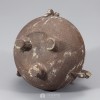 硬陶是用1100℃左右高温烧制的坚硬陶器,产生于新石器时代,从上晚期到西周中期盛行的硬质土器,主要供皇室或贵族使用。该硬陶香炉肩部置三个兽耳,形状似爬行在肩膀上的形象化的蛇。器身采用敲打基壁使其变硬的打捺和拍印技法所刻格子花纹,凸起的腹部以下置呈三角形分布的三条腿。“3”这个数字象征宇宙万物的核心即天与地,人与道,同时被认为是古代社会最完美的数字。