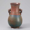 구연부와 굽이 넓고 몸통이 둥글며 목의 양쪽에 상상의 동물인 포수(鋪首)가 둥근 고리와 함께 붙어 있는 북송 균요 포수쌍이병(鋪首双耳甁)입니다.