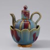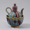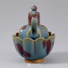 뚜껑이 포함된 작은 구연부와 직선으로 곧게 뻗은 짧은 목, 팔각형의 둥근 몸체를 가진 북송 균요(均窯) 주자와 연꽃 모양의 온완입니다.