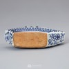 船舱和船身用鲜明的钴蓝的青花,绘点和线的几何图案和花草图案,意味着永远的生活和富裕。船头和船尾穿B形和圆形的孔,通过船头的水口,里面的水可以逐渐向外流出。