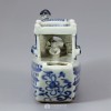 원나라 황제나 귀족의 고분에 있던 부장품인 '명기(明器)'로 추정되는 이 청화백자 선형 연적은 전체적으로 선박 모양이며, 앞쪽과 뒷쪽이 좁고 중간은 비교적 넓은 선체를 갖추고 있습니다. 장방형 선실의 가운데에는 선장이 두 손을 모은 채 앞을 보고 앉아 있고, 그 뒤의 좌우 창문에는 좌석이 한 개씩 놓여 있습니다. 선미에는 모자를 쓴 뱃사공이 선실의 지붕에 두 손을 얹은 채 기대어 서 있습니다.