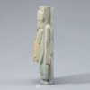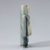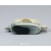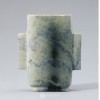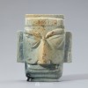 A rectangular jade face figurine with thick eyebrows, droplet eyes, a strong, straight nose, and long, sealed lips, overall plain and realistic.