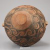 목 사이에 두 개의 귀가 대칭적으로 붙어 있고 복부의 양쪽에는 작은 고리 형태의 두 귀가 대칭적으로 붙어 있습니다. 몸통은 좌우가 비대칭이고, 굽은 몸통에 비해 아주 작습니다. 몸통에는 검정색으로 날렵한 곡선과 소용돌이 모양과 두 인물이 태양 아래에서 춤을 추는 듯한 모습이 그려져 있습니다. 검은 선은 매우 유려합니다. 추상적이고 날렵한 선에서 당시 화가의 높은 예술성을 확인할 수 있습니다.