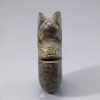 전체적으로 몸을 웅크린 원형으로 머리 부분이 크며, 이목구비가 과장되게 묘사되어 있습니다. 돼지코처럼 콧구멍이 드러나고 그 위로 콧등이 주름져 있습니다. 목에는 구멍이 하나 뚫려 있습니다. 꼬리 끝부분은 안으로 말려 들어가 있으나, 머리와 꼬리는 끊어진 형태입니다. 동글동글하지만 묵직하고 힘 있는 멋을 가지고 있는 홍산문화 특유의 조형입니다.