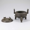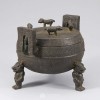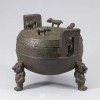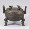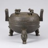 곰 모양의 세 다리[三足]에 받쳐진 원통형 몸체와 네 마리의 황소가 서 있는 모습이 붙어있는 뚜껑으로 구성되어 있는 청동 정(鼎)입니다.