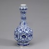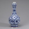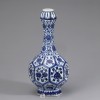 On the neck are lotus lappets, floral scrolls, and floral medallions in underglaze blue on the white ground.