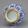 白壁上绘蓝青颜料,口沿部以下颈部绘荷叶的变形莲瓣纹和唐草纹,宝相花纹,腹部为削去球体各个部分后形成的八个六角形,其上绘不同形态的莲花纹和菊花纹。