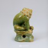 Unlike common lion figurines depicted as brave, the present figurine is depicted as relaxed and resembles a dog.