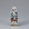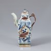 This ewer has a rectangular section body surmounted by a short neck and a truncated mouth.