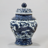 The presence of the five-clawed dragon indicates that this piece was likely created for the emperor. On the upper part of the jar’s body, an imperial reign mark reading ‘Made in the Xuande period of the Great Ming’ (大明宣德年製) is inscribed.