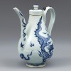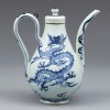 This ewer features a Yuhuchun-style body with a dragon depicted flying through flames.