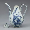 执壶呈玉壶春瓶状,壶身绘在火焰间飞舞的龙纹。龙有三爪,并作张牙舞爪状。