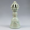 青瓷呈金刚铃状。金刚铃是佛教仪式中的法器。通过敲击铃声,为督励众生精进,驱除烦恼,用铃声警觉之。
