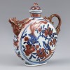 执壶通体以青花和釉里红绘石榴树和栖息其上的绶带鸟。