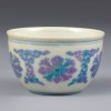 Inside the cup, within a circular border, there is also a detailed depiction of a cross-shaped vajra-style baoxianghua motif.