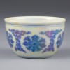 이 잔은 청화(靑花)로 다섯 개의 십자 모양 금강저식(金剛杵式) 보상화문(寶相華紋)과 그 사이마다 운기문(雲氣文)이 그려져 있습니다.