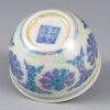 杯内亦绘有圆形边框内的十字形金刚杵式宝相花纹,笔触精细。