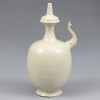 净瓶肩部附有高高翘起象鼻的象首流。佛教将白象视为极为神圣的存在,其原因源于一则传说:释迦牟尼的母亲在胎梦中梦见了一头长有六根象牙的白象。