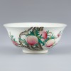 碗内外施白釉,外壁以粉彩描绘桃树。