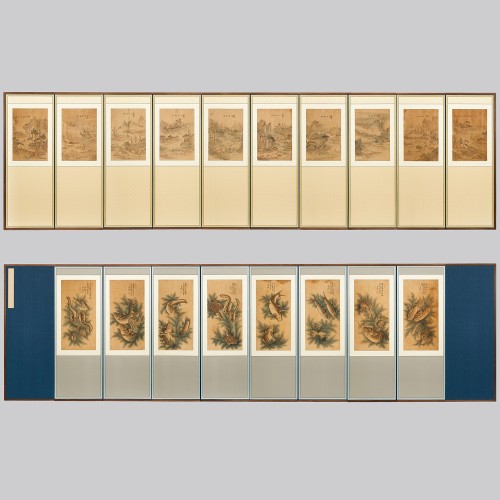 101 (앞) 소상팔경 10폭 병풍 (뒤) 어해도 8폭 병풍 조선시대 | (앞) 각 49.2×33.5 cm (뒤) 각 66.7×33 cm