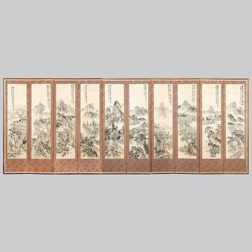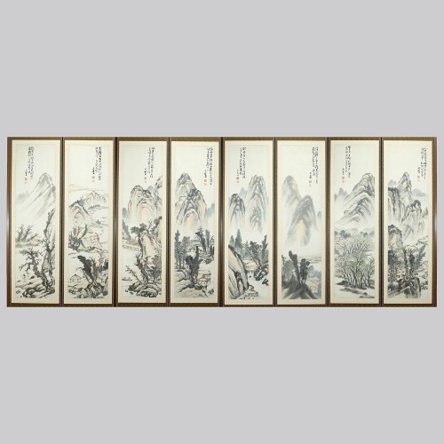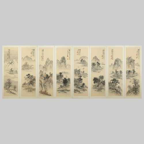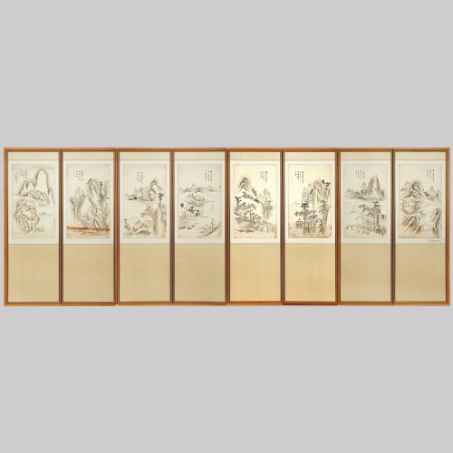 107 백련 지운영 산수화 8폭 병풍 조선시대 | 각 145×38 cm