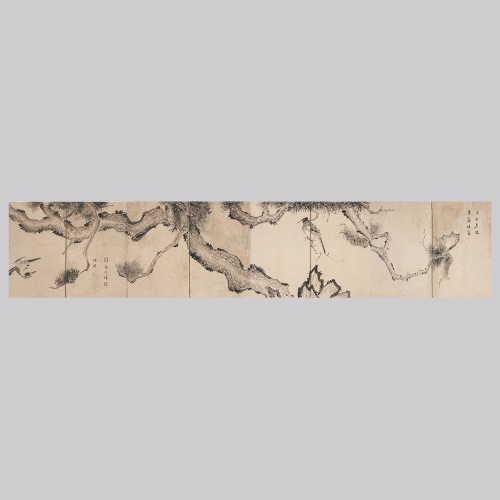 105 노송도 8폭 일지병풍 조선시대 | 61.3×296 cm