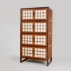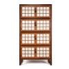The bookshelf is composed of four storage compartments. Each compartment has hinged doors that can be separated using hinges, and each layer features a 3x4 grid of framed lattice doors on all sides, creating a sense of space within.