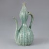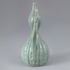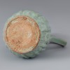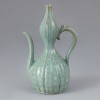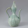 This is a gourd-shaped ewer with vertical ribs formed on the body. The spout, engraved with lotus flower motifs and lotus scroll motifs, and the handle, with ribs formed on the back, were separately made and attached. Around the neck, pearl motifs are decorated in vertical direction, below which lotus flower motifs are densely engraved along the vertical ribs, and at the lower part, continuous pearl patterns and lotus petal patterns are embossed. The glaze on the underside of the bent foot was removed, and the piece was fired with clay mixed with clay body support, and a mark resembling '公' is left on the inside bottom. A similar type of mark can also be found in the National Museum of Korea's <Gourd-shaped ewer with raised lotus flower design> (donated by Chairman Lee Kun-hee, Kunhee211). It is presumed to have been produced in the Yucheon-ri kiln site in Buan.
