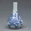 이 백자청화운룡문병(白瓷靑畵雲龍紋甁)은 조선 후기 왕실에서 연례 의식에 사용한 것으로 추정되는 청화백자입니다. 청화백자는 정제된 백토를 고온에서 소성하고 표면에 청화 안료로 무늬를 그린 뒤 유약을 입혀 구워내는 방식으로 만들어집니다. 산화코발트가 주원료인 청화 안료로 그려진 청화백자의 그 푸른 색감은 세련됨과 기품이 동시에 느껴집니다.