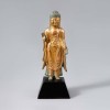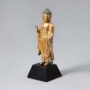 This Gilt-Bronze Standing Buddha from the Three Kingdoms period features a balanced and simple form, distinguished by its serene smile.