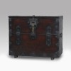 箱体表面涂以深色漆料,以掩盖木质纹理。左右对称地配置黑色金属饰件,中央安装葫芦形铰链与“ㄷ”字形肚脐锁。该家具避免使用过多装饰,重在功能性设计,充分展现了北部地区家具特色。