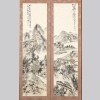 此为南农许楗创作的十扇屏风作品。画面中对茅屋、桥梁、亭阁与人物的描绘十分克制,重点突出自然山水的表达。山水以淡雅的设色润染,渲染出季节感与生命气息;同时,画面通过远景淡化、近景加深的技法,巧妙表现了空间的深度与层次。