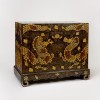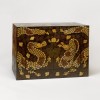 Against a dark lacquered background, dragons are depicted facing each other with a wish-fulfilling jewel, between them—a composition symbolizing authority and auspiciousness. The surface is densely filled with cloud patterns and other auspicious motifs, adding to the visual richness. Materials such as mother-of-pearl and tortoiseshell were used—tortoiseshell was considered a rare and precious material, indicating that this piece was exclusive to the elite class.