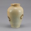 This jar, made in the Goryeo period, is decorated with grass motifs painted in iron-brown on white porcelain. Since celadon dominated Goryeo ceramics, white porcelain was relatively rare. Fired at lower temperatures than later Joseon wares, it is characterized by its ivory-tinted (ya-bai) surface.