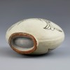 이 유물은 백토에 덤벙하여 동체 전체를 하얗게 분장한 뒤 산화철 안료로 물고기 문양을 시문하였습니다. 전면을 가득 채운 선명하고 커다란 물고기 문양에서 거침없는 필치가 돋보입니다.