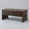This example consists of a broad top panel (cheonpan), plank-style legs, and three drawers along the front. The dark lacquered finish and pierced metal fittings provide a refined and dignified aesthetic, while side handles were added for ease of movement.
