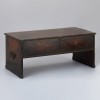 넓은 천판(天板)과 이를 지탱하는 판재형(板材形) 다리, 그리고 전면에 서랍 세 칸으로 이루어져 있습니다. 짙은 옻칠 바탕과 문양이 투각된 금속 장석은 단정하면서도 기품 있는 미감을 보여주고, 측면의 손잡이는 이동의 편리성을 고려하였습니다.