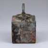 此壶推测制作于旧韩末时期。壶身近似立方体结构,顶部置有一平盖,壶盖以铜链与壶身相连,以防遗失。壶身一侧棱角处设有出水口。整体以铜材制成,坚实耐用,表面留有岁月流逝所产生的自然腐蚀痕迹。